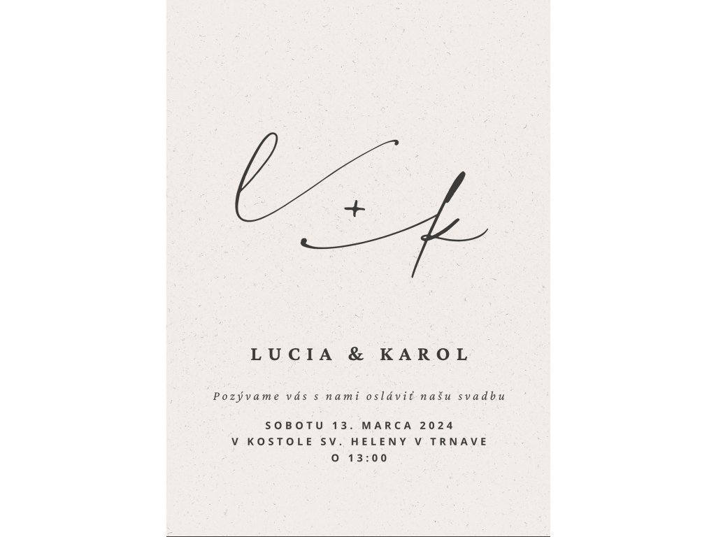 Svadobné oznámenie v minimalistickom štýle s tmavším (krémovejším) pozadím, ktoré pôsobí nežne a vzdušne. Čierne písmo je výrazné, no zároveň decentné, čo zabezpečuje perfektnú čitateľnosť a nadčasový vzhľad. Tento dizajn osloví páry, ktoré milujú jednoduchosť a eleganciu bez prehnaných dekorácií. Je to ideálna voľba pre modernú svadbu s dôrazom na čisté línie a pokoj.