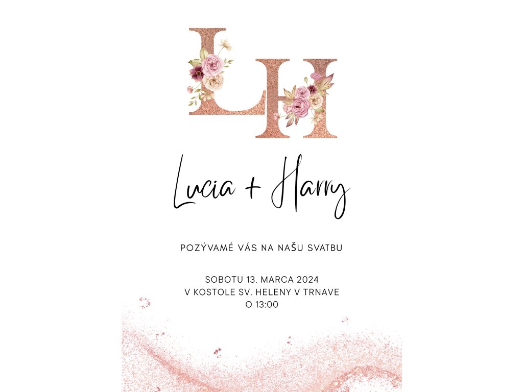 Toto svadobné oznámenie v sebe spája čistotu bieleho pozadia s jemným dotykom lesku a romantiky. Dve veľké ružovo trblietavé písmená symbolizujú zaľúbený pár a okamžite pritiahnu pozornosť. Spodná časť oznámenia s rovnakým ružovým trblietaním pôsobí ako záblesk lásky a radosti. Ideálne pre nevestu a ženícha, ktorí chcú, aby ich deň žiaril od prvej chvíle.